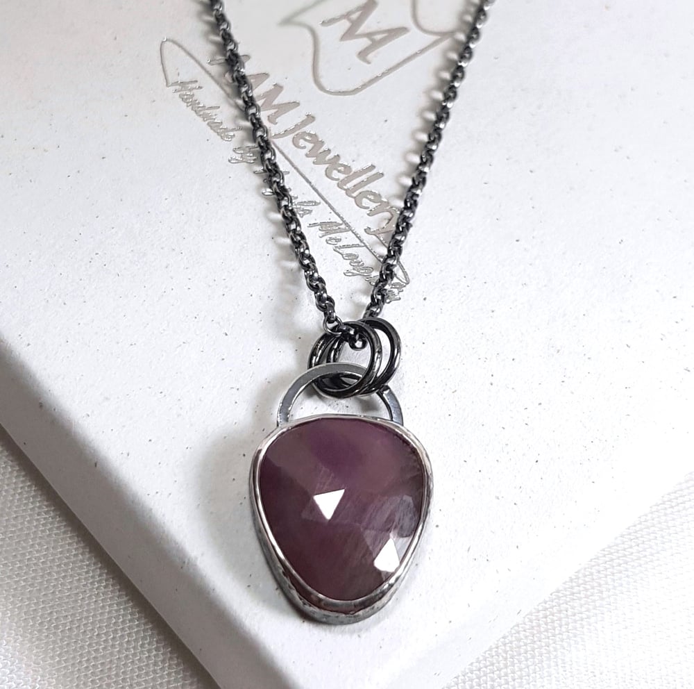 Purple Sapphire Pendant, Sterling Silver Necklace with Unique Purple Sapphire, September Birthstone