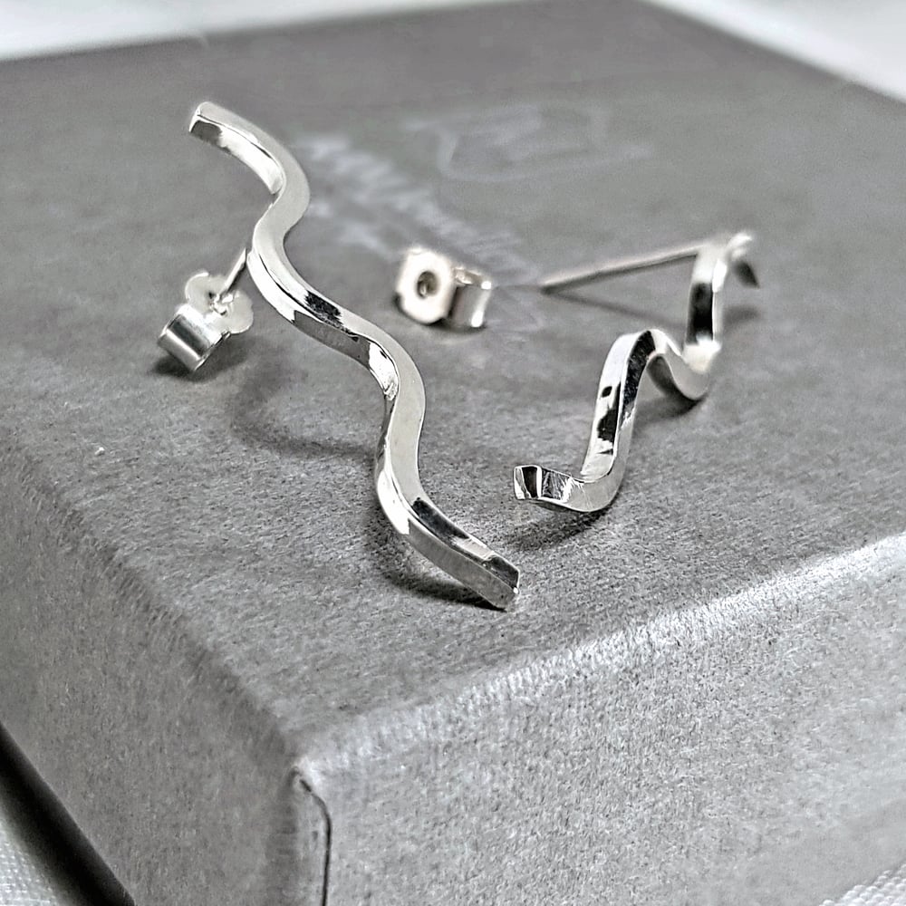 Silver Wave Earrings, Sterling Silver Squiggle Earrings, Handmade Contemporary Silver Studs