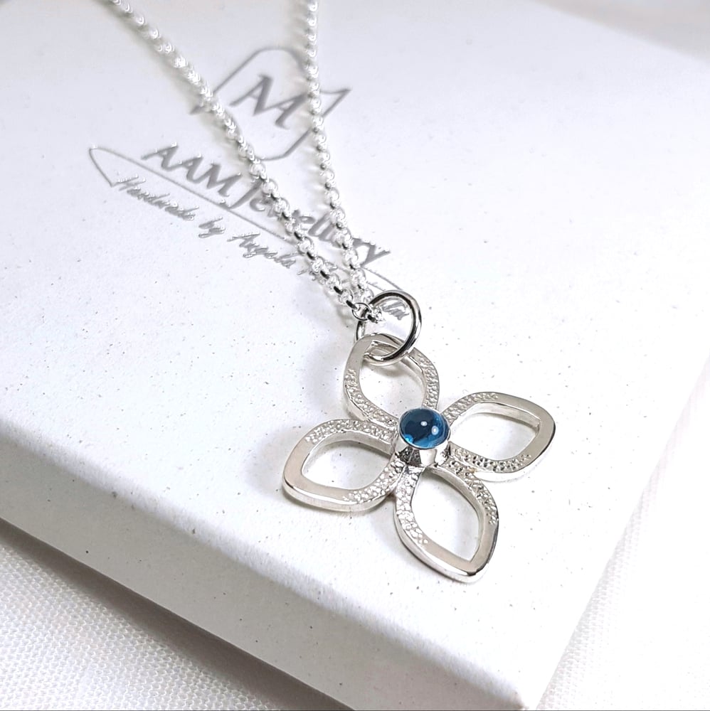 Sterling Silver Flower Necklace, Blue Topaz Pendant, November Birthstone