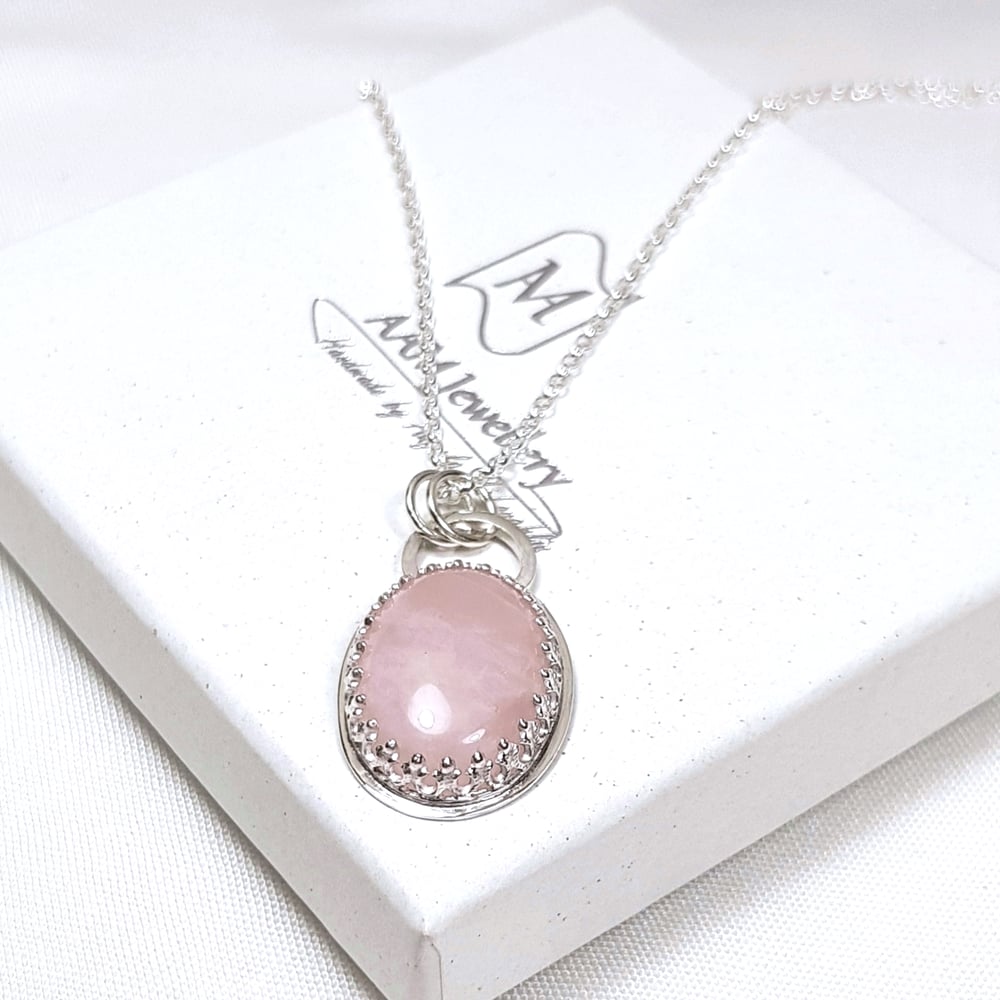 Sterling Silver Rose Quartz Pendant Necklace, Handmade Sustainable Jewellery UK