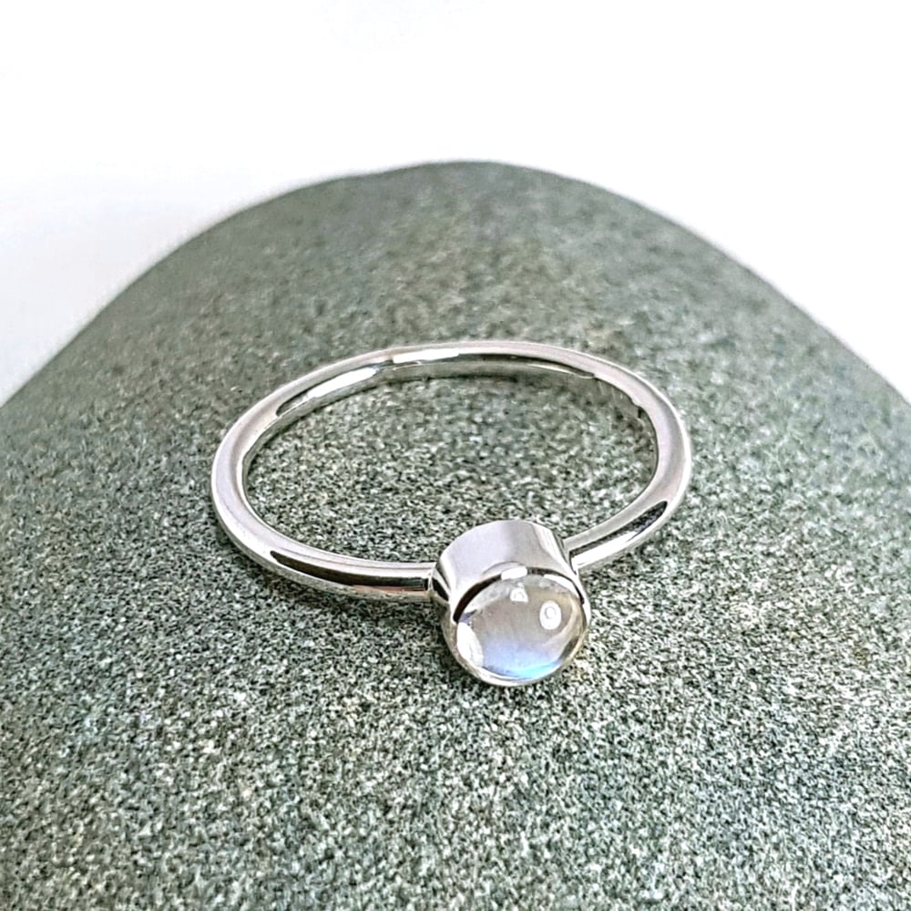 Sterling Silver Moonstone Ring, Handmade Silver Stacking Ring, UK Hallmark