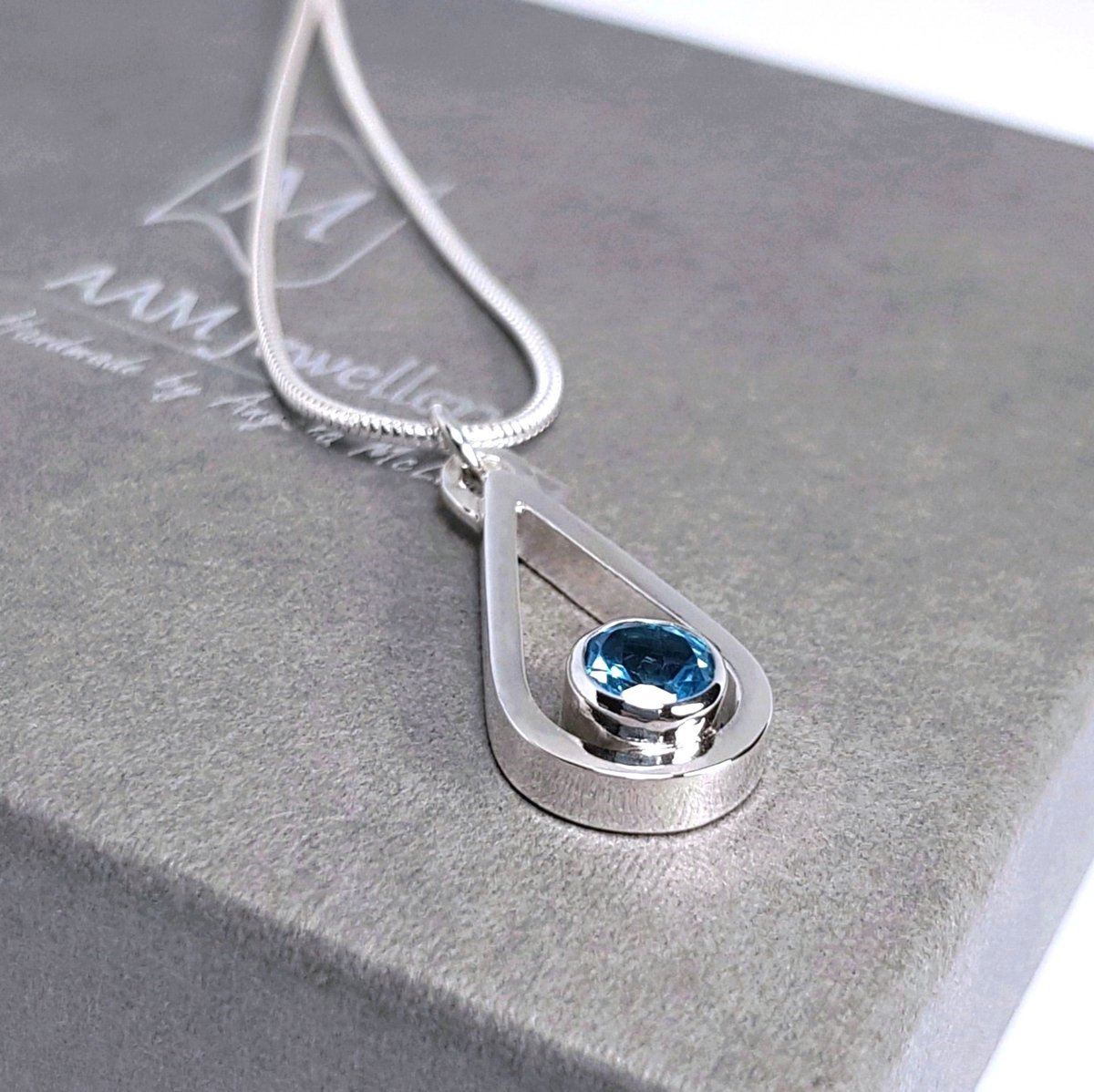 Blue Topaz Necklace, Handmade Sterling Silver Teardrop Pendant